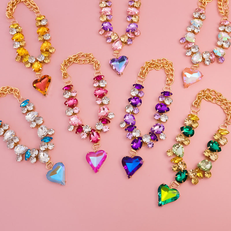 • Multi-cut crystals with a statement heart charm for clear, layered sparkle