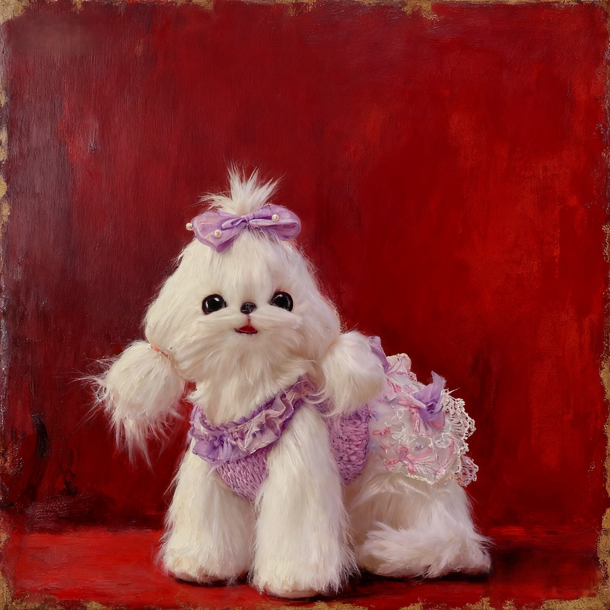 Handmade Luxury Dog Dress Purple Lace Pearl Bow Outfit
